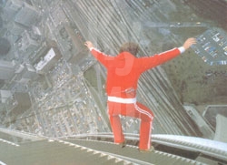 Dar atop the CN tower in Toronto Canada preparing for a 1200 foot plunge over the edge.
